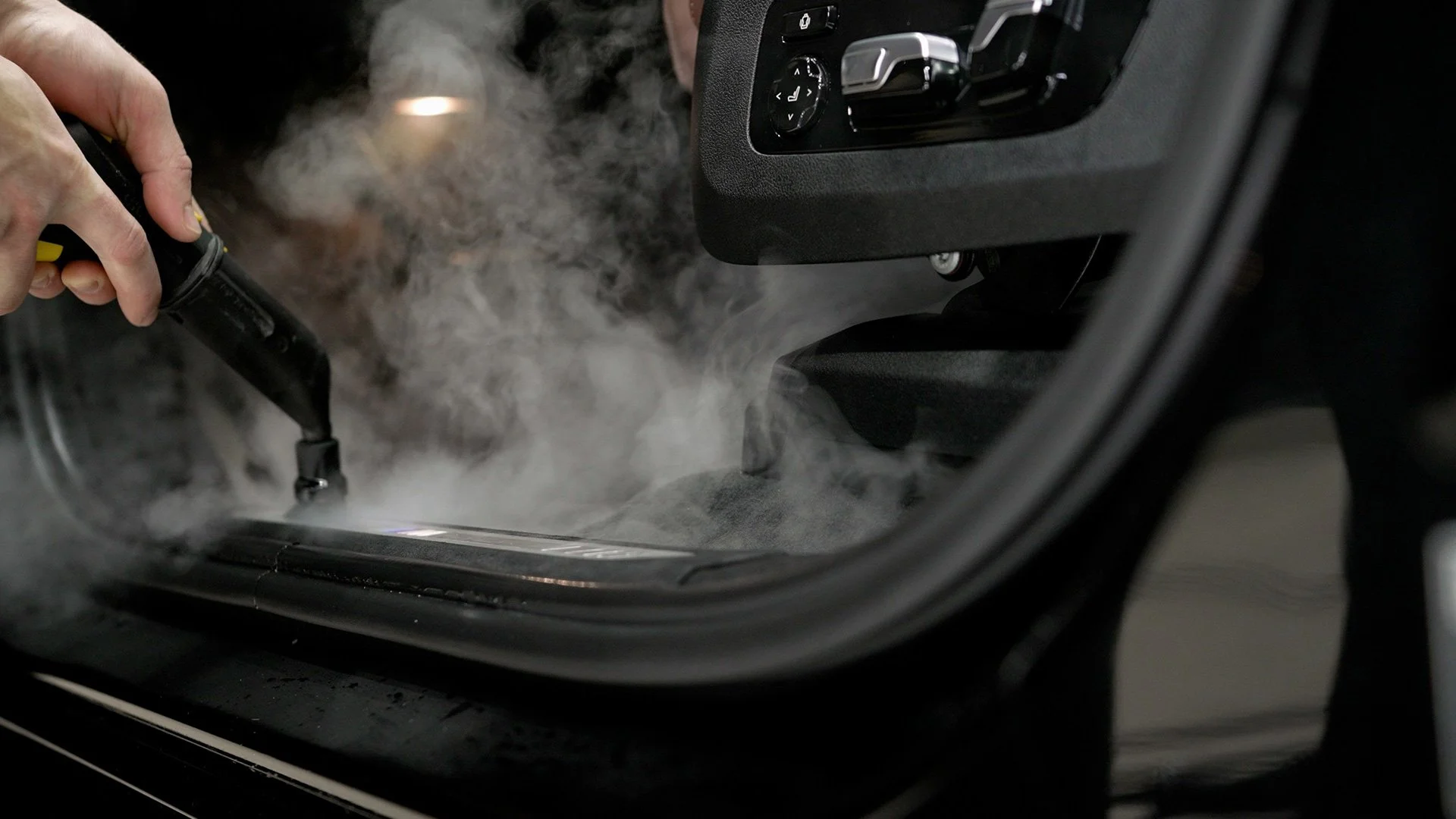 Using high pressure hot steam to sanitize and deep clean interiors, removing dirt, grime, and bacteria effectively,